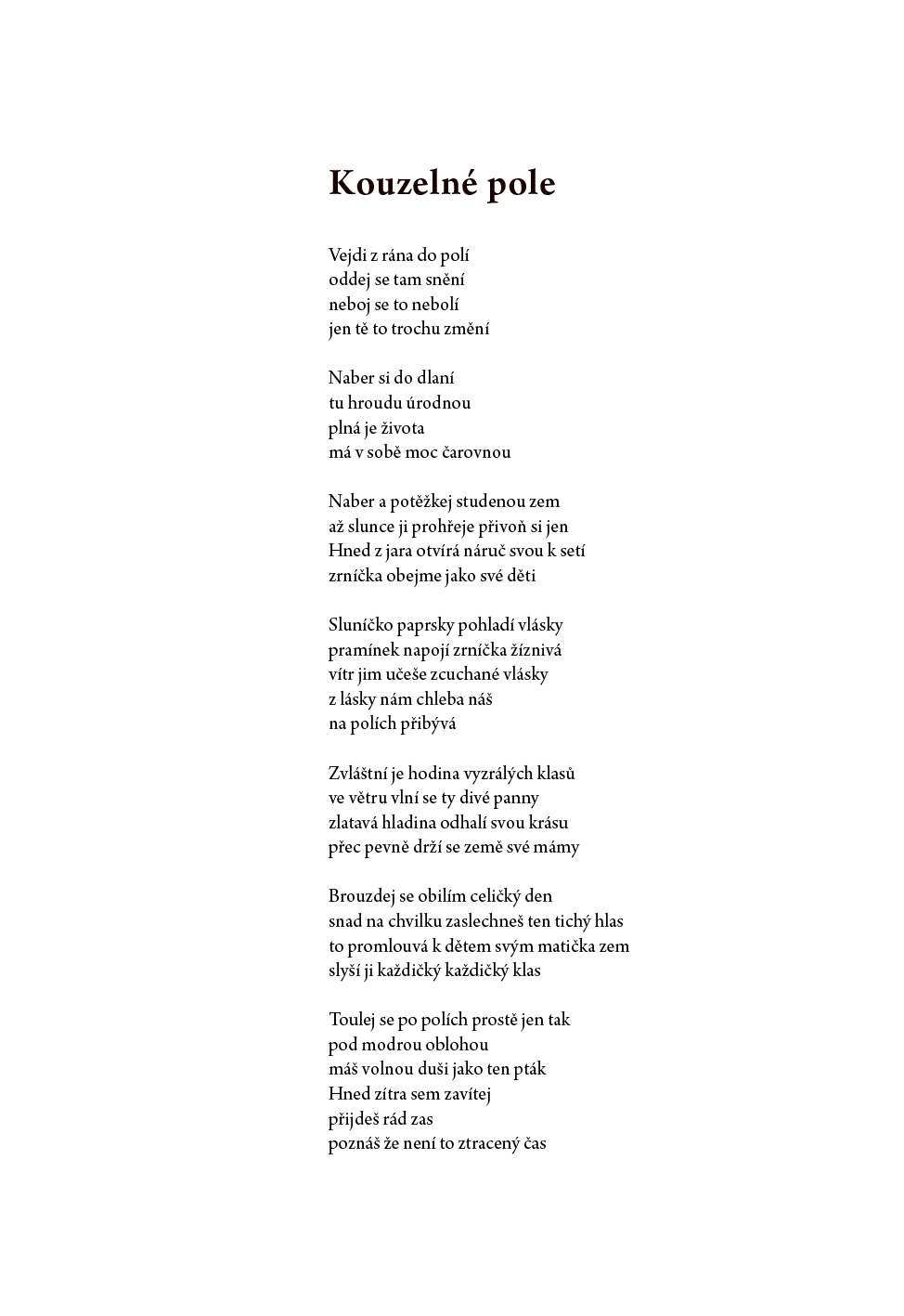 - Snění a fantazie: Pozvánka do „Kouzelného pole“, kde se čtenář může oddat snění, které jej „trochu změní“ a naplní novou silou.