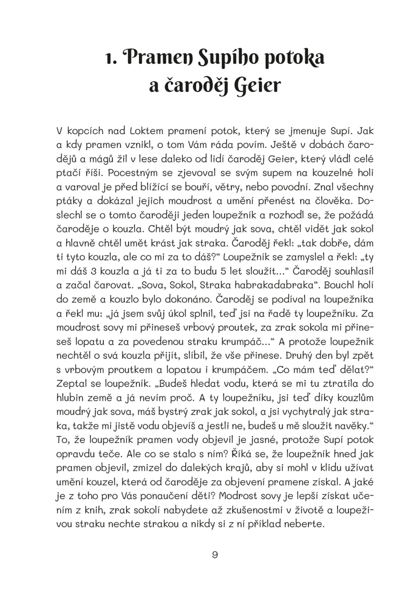 Knížka je ideální pro společné rodinné čtení a následné výlety po stopách jednotlivých hrdinů do čarovných lesů obklopujících malebný Loket.